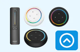 Per i nastri LED Zigbee, si utilizza il nostro telecomando Zigbee Miboxer. Questo dispositivo ha tre opzioni: dimmerazione tramite la barra luminosa blu (modalità luce bianca e modalità RGB), regolazione del colore o della saturazione della luce tramite la barra cromatica (modalità luce bianca = colore della luce / modalità RGB = saturazione) e regolazione del colore tramite il cerchio cromatico (solo modalità RGB). È possibile impostare questi parametri individualmente per ogni zona (controller) collegata al telecomando.