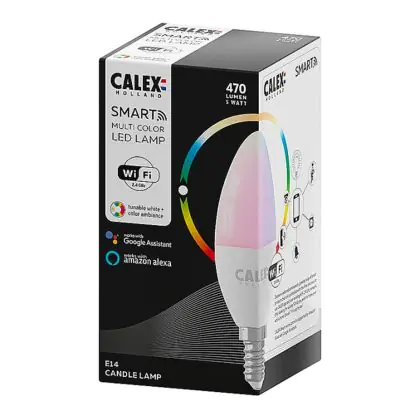 Puoi installare facilmente la lampadina smart Candela LED tramite l'app ufficiale Calex, che puoi scaricare gratuitamente. Calex utilizza la piattaforma Tuya, che si collega al Wi-Fi di casa. Usando l’app è possibile controllare più lampade contemporaneamente e assegnare a ciascuna lampadina il proprio nome, ad esempio "Luce sopra la TV". Non solo potrai accendere la luce da qualsiasi punto della casa, ma potrai anche impostare un timer in modo che si accenda automaticamente quando vuoi tu. Comodo vero?