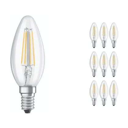 Confezione Multipack 10x Ledvance CLASSIC LED E14 Candela Filamento Chiara 4W 470lm - 840 Bianco Freddo | Sostitutiva 40W