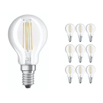Confezione Multipack 10x Ledvance CLASSIC LED E14 Pera Filamento Chiara 4.2W 470lm - 927 Bianco Molto Caldo | Miglior resa cromatica - Dimmerabile - Sostitutiva 40W