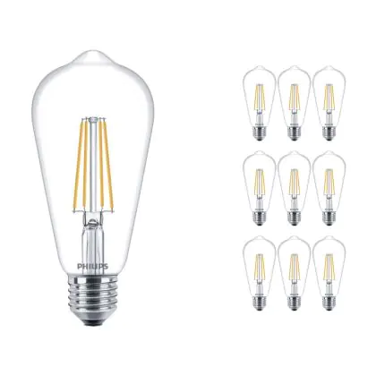 Confezione Multipack 10x Philips Corepro LED Bulbo E27 Edison Filamento Chiara 7W 806lm - 827 Bianco Molto Caldo | Sostitutiva 60W