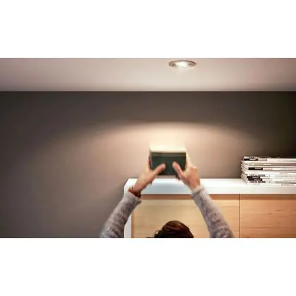 Con gli apparecchi dimmerabili si può rregolare l'intensità luminosa. Quando si abbassa la potenza della luce si consuma meno energia elettrica e si risparmia quindi sui costi energetici. Le lampade dimmerabili possono anche essere usate per creare un'atmosfera molto accogliente. Tieni presente che hai bisogno di un dimmer LED per regolare apparecchi LED.