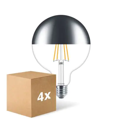Confezione Multipack 4x Philips Classic LED Globe E27 Filamento Mirror Chiara 120mm 7.2W 650lm - 827 Bianco Molto Caldo | Dimmerabile - Sostitutiva 60W