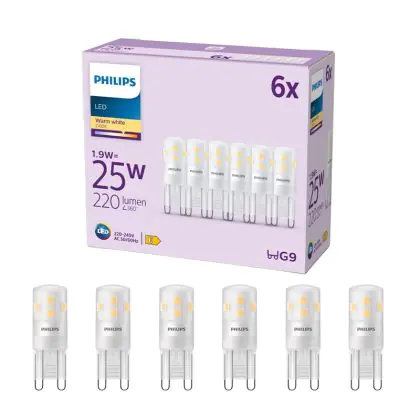Confezione Multipack 6x Philips LED Capsule G9 Ghiaccio 1.9W 220lm - 827 Bianco Molto Caldo