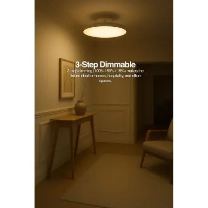 Dimmerazione a 3 Livelli: Regola l’intensità luminosa in tre fasi tramite l'interruttore a parete standard; nessun dimmer aggiuntivo richiesto.