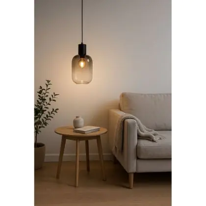 La sospensione D'Lite Leffinge in vetro fumé combina estetica raffinata e funzionalità. Il vetro fumé offre una luce calda e invitante, mentre il design compatto si adatta perfettamente sia a spazi ampi che più contenuti. Ideale per chi cerca un equilibrio tra stile e praticità.