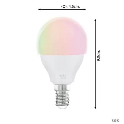 La lampada Eglo Connect.Z Smart LED Sferica E14 Ghiaccio 4.9W 470lm - 827 Bianco Molto Caldo | Dimmerabile - Sostitutiva 40W è il sostituto perfetto per le tue vecchie lampade 40W con attacco a vite piccolo E14 grazie alla sua tecnologia LED. Passare a LED ti offrirà molti vantaggi!