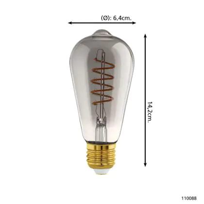 Descrizione Eglo LED Edison E27 Filamento Smokey 4W 100lm - 820 Bianco Molto Caldo | Dimmerabile - Sostitutiva 15W