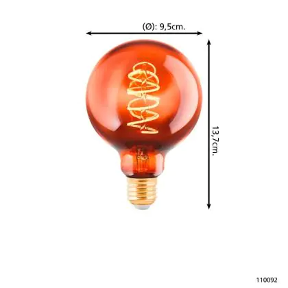 Descrizione Eglo LED Globe E27 Filamento Ambra 4W 30lm - 820 Bianco Molto Caldo | Dimmerabile - Sostitutiva 15W