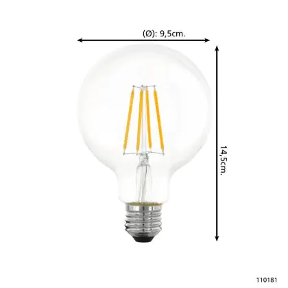 La Eglo LED Globe E27 Filamento Chiara 7.3W 806lm - 827 Bianco Molto Caldo | Dimmerabile - Sostitutiva 60W è la perfetta sostituzione per la tua lampada convenzionale 60W con attacco E27 grazie alla sua tecnologia LED. Passare a LED ti offrirà tanti vantaggi!