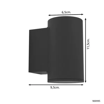 Descrizione Eglo Luce Da Parete Izzalini Esterni Acciaio Nero 2.8W 250lm - 830 Luce Calda - | Adatto per GU10