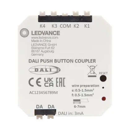 | Nome del fabbricante | DALI-2 PUSH BUTTON COUPLER COUPLER DALI-2 | |