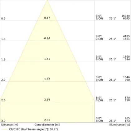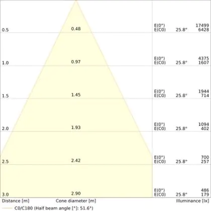 L'apertura del fascio luminoso indica l'angolo del fascio di luce proveniente da una lampada o lampadina. Si misura in gradi (D) e più piccolo è l'angolo, più piccola è l'apertura del fascio di luce.