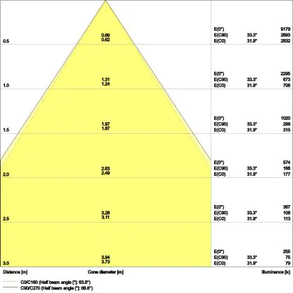 L'apertura del fascio luminoso indica l'angolo del fascio di luce proveniente da una lampada o lampadina. Si misura in gradi (D) e più piccolo è l'angolo, più piccola è l'apertura del fascio di luce.
