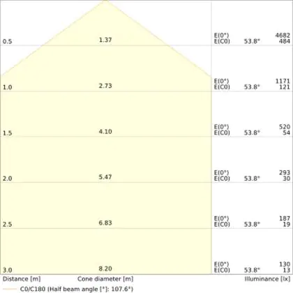 L'apertura del fascio luminoso indica l'angolo del fascio di luce proveniente da una lampada o lampadina. Si misura in gradi (D) e più piccolo è l'angolo, più piccola è l'apertura del fascio di luce.