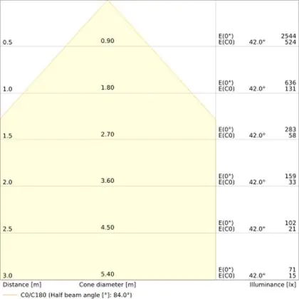 L'apertura del fascio luminoso indica l'angolo del fascio di luce proveniente da una lampada o lampadina. Si misura in gradi (D) e più piccolo è l'angolo, più piccola è l'apertura del fascio di luce.