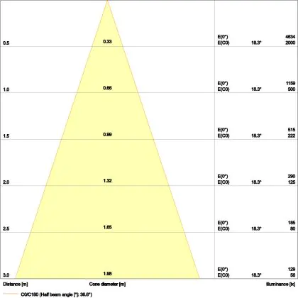 L'apertura del fascio luminoso indica l'angolo del fascio di luce proveniente da una lampada o lampadina. Si misura in gradi (D) e più piccolo è l'angolo, più piccola è l'apertura del fascio di luce.