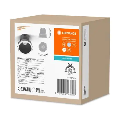Descrizione Ledvance Faretti LED Twist Pro Aluminium Nero Riflettore 5W 350lm 30D - 840 Bianco Freddo | 70mm - Ritaglio 65mm - IP20