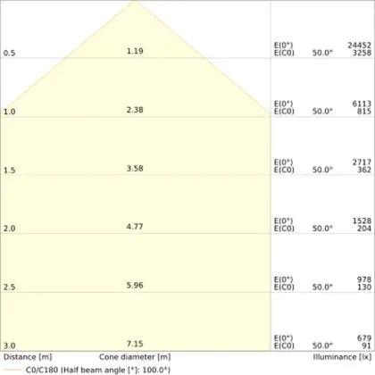 L'apertura del fascio luminoso indica l'angolo del fascio di luce proveniente da una lampada o lampadina. Si misura in gradi (D) e più piccolo è l'angolo, più piccola è l'apertura del fascio di luce.