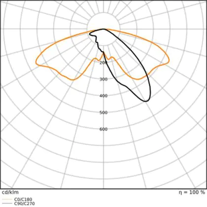 L'alloggiamento impermeabile di questa sorgente luminosa non è l'unica ragione per cui è perfetta per l'uso all'aperto. Infatti bisogna considerare anche la distribuzione della luce di questa lampada stradale, che ha apertura del fascio luminoso di 50x150° ed emette luce di colore .