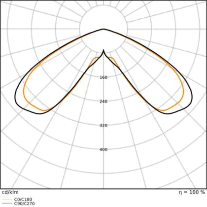 L'alloggiamento impermeabile di questa sorgente luminosa non è l'unica ragione per cui è perfetta per l'uso all'aperto. Infatti bisogna considerare anche la distribuzione della luce di questa lampada stradale, che ha apertura del fascio luminoso di 140° ed emette luce di colore .