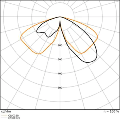 L'alloggiamento impermeabile di questa sorgente luminosa non è l'unica ragione per cui è perfetta per l'uso all'aperto. Infatti bisogna considerare anche la distribuzione della luce di questa lampada stradale, che ha apertura del fascio luminoso di 140° ed emette luce di colore .