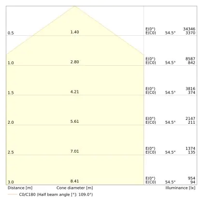 L'apertura del fascio luminoso indica l'angolo del fascio di luce proveniente da una lampada o lampadina. Si misura in gradi (D) e più piccolo è l'angolo, più piccola è l'apertura del fascio di luce.