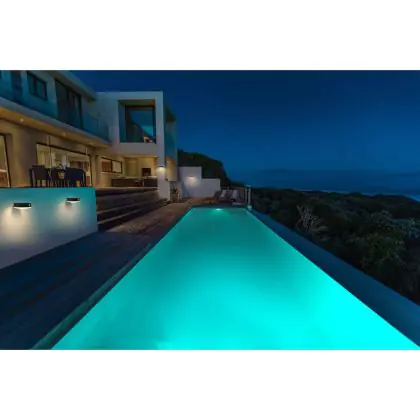 Questo apparecchio può essere usato sia in spazi interni che in spazi esterni, poiché ha indice di protezione contro l'ingresso di acqua e polvere IP44. In generale, un apparecchio con IP44 è resistente a schizzi di acqua e umidità, e può quindi essere installato in spazi esterni molto umidi o esterni riparati, come sono una tettoia. Un apparecchio che invece verrà esposto a intensi getti di acqua deve avere almeno IP54. Questa lampada ha anche un indice di resistenza a urti e impatti di IK03 - 0.35 joule