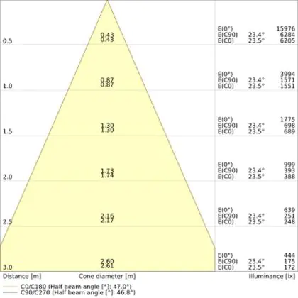 L'apertura del fascio luminoso indica l'angolo del fascio di luce proveniente da una lampada o lampadina. Si misura in gradi (D) e più piccolo è l'angolo, più piccola è l'apertura del fascio di luce.