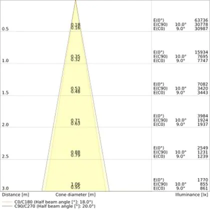 Angolo del Fascio luminoso (gradi) | 18, 50 |