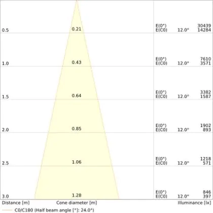 Angolo del Fascio luminoso (gradi) | 24 |