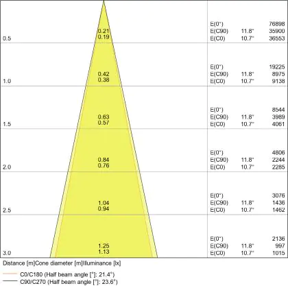 L'apertura del fascio luminoso indica l'angolo del fascio di luce proveniente da una lampada o lampadina. Si misura in gradi (D) e più piccolo è l'angolo, più piccola è l'apertura del fascio di luce.