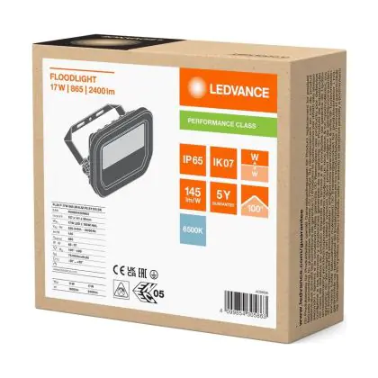 Descrizione Ledvance Proiettore LED Aluminium Nero 17W 2400lm 100D - 865 Luce Del Giorno | IP66 - Simmetrico