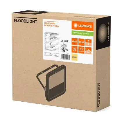 Descrizione Ledvance Proiettore LED Aluminium Nero 69W 9150lm 100D - 830 Luce Calda - | IP66 - Simmetrico