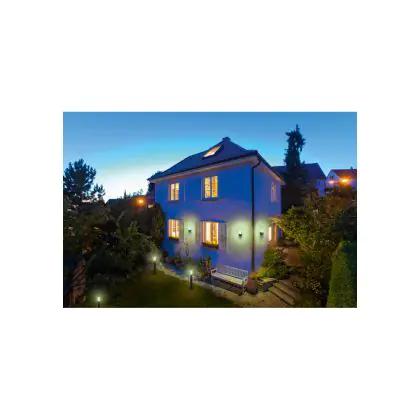 Benché questo apparecchio LED sia progettato per spazi esterni, è bene ricordare che esistono delle differenze per quanto riguarda il grado di impermeabilità, indicato dal valore IP. Per esempio gli apparecchi con valore IP44 sono resistenti agli spruzzi e umidità, ma non alle forti piogge e getti d’acqua diretti. Solo a partire dal grado IP65 un apparecchio di illuminazione può resistere a questa situazione. Tieni quindi conto del valore IP quando decidi dove posizionare le tue fonti di luce. Gli apparecchi IP44, per esempio, possono essere posizionati sotto una tettoia. Il valore IP di questo apparecchio è di IP44.