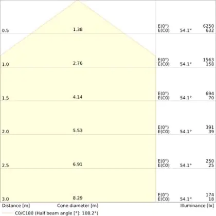 Il codice colore è una combinazione di resa cromatica (CRI) e colore della luce (Kelvin). La prima cifra indica la resa cromatica (1 = resa del colore molto bassa, 9 = massima resa del colore), mentre la seconda e la terza si riferiscono al colore della luce. Esempio: il codice colore 830 indica una buona resa cromatica (8) e luce bianca calda (3000K). |