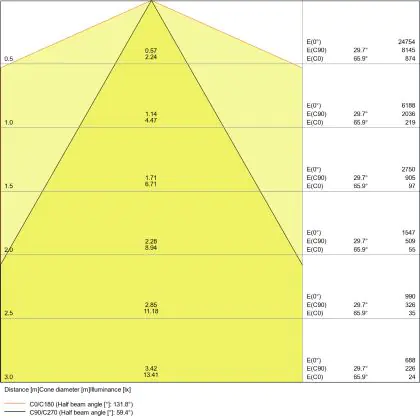 Il codice colore è una combinazione di resa cromatica (CRI) e colore della luce (Kelvin). La prima cifra indica la resa cromatica (1 = resa del colore molto bassa, 9 = massima resa del colore), mentre la seconda e la terza si riferiscono al colore della luce. Esempio: il codice colore 830 indica una buona resa cromatica (8) e luce bianca calda (3000K). |