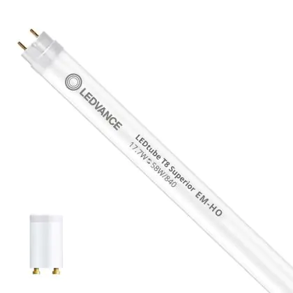 Il Ledvance Tubo LED T8 Superior (EM/Mains) High Output 17.7W 3100lm - 840 Bianco Freddo | 150cm - Sostitutiva 58W è l’alternativa perfetta per il tubo fluorescente standard 58W nelle plafoniere con un reattore. Con questo tubo LED hai una garanzia di una vita media utile molto lunga e 5 anni Lampadadiretta.it di totale garanzia. .