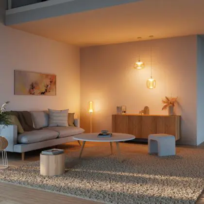 Con gli apparecchi dimmerabili si può rregolare l'intensità luminosa. Quando si abbassa la potenza della luce si consuma meno energia elettrica e si risparmia quindi sui costi energetici. Le lampade dimmerabili possono anche essere usate per creare un'atmosfera molto accogliente. Tieni presente che hai bisogno di un dimmer LED per regolare apparecchi LED.