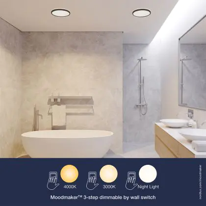 La plafoniera LED Nordlux fa parte della gamma Oja e presenta un design moderno e minimalista. L'apparecchio si distingue anche per la lunga durata e la seconda migliore resa cromatica.