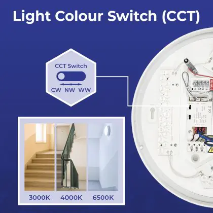 Per scegliere un apparecchio di illuminazione bisogna anche considerare dove verrà installato. Per esempio la luce di 2700 Kelvin (bianco molto caldo) e 3000 Kelvin (bianco caldo) creano un’atmosfera rilassante e piacevole. Questa tonalità è quindi molto adatta ad ambienti accoglienti o a zone generiche come corridoi, ascensori, disimpegni o pianerottoli. Una luce di 4000 Kelvin (bianco freddo), invece,è più luminosa e fresca ed è quindi adatta come illuminazione funzionale in uffici, aziende, scuole e biblioteche. La temperatura di colore di questa plafoniera LED è .