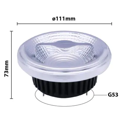 La Noxion Lucent Faretti LED G53 AR111 12W 600lm 40D - 927 Bianco Molto Caldo | Miglior resa cromatica - Sostitutiva 50W è la perfetta sostituzione della classica lamapda alogena50W G53 con colore della luce 927 Bianco Molto Caldo. Questa lampadina ha una forma "Aluminium Reflector" (Spot) con diametro di 111mm e gli attacchi hanno una distanza di 53mm l’uno dall’altro. La lampada G53 è molto più sicura in ambienti umidi rispetto le lampade alogene a 230volt, le lampade G53 funzionano a 12V. Perciò c’è bisogno del trasformatore per avere un voltaggio di 12V. Puoi trovare i trasformatori adatti in "Accessori" su questa pagina prodotti. Di quale trasformatore hai bisogno, dipende dal numero di lampade che vuoi connettere. Il nostro servizio clienti puoi aiutarti con la scelta. Passare a LED ti offrirà tanti vantaggi!