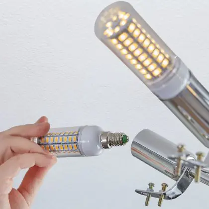 Con gli apparecchi dimmerabili si può rregolare l'intensità luminosa. Quando si abbassa la potenza della luce si consuma meno energia elettrica e si risparmia quindi sui costi energetici. Le lampade dimmerabili possono anche essere usate per creare un'atmosfera molto accogliente. Tieni presente che hai bisogno di un dimmer LED per regolare apparecchi LED.