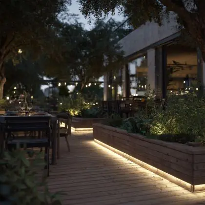 Questa fonte di luce può sempre essere utilizzata per l'illuminazione d'accento. Per usarla invece come illuminazione generale bisogna considerare l’emissione luminosa e l’apertura del fascio di luce. Questa striscia LED è lunga 5000 mm e ha una potenza luminosa di 1280 Lumen. Dividendo il numero di Lumen per la lunghezza della striscia LED troverai la potenza luminosa per metro. Le strisce LED hanno generalmente un fascio di luce ad ampio angolo, che non fa eccezione per questo articolo: °. Clicca qui per scoprire quanti lumen servono in ogni stanza.