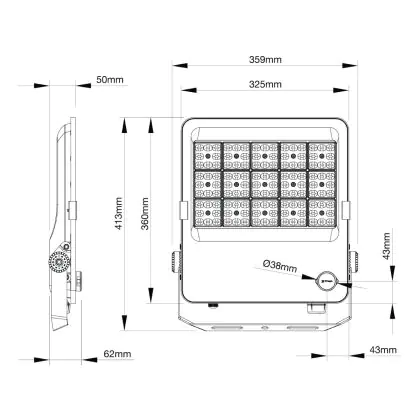 Descrizione Noxion Proiettore LED ProBeam V2.0 130W 18200lm 60D - 830-840-865 CCT | IP66 - Simmetrico