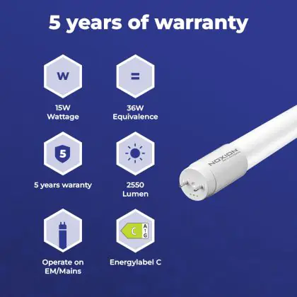 Il Noxion Tubo LED T8 Avant Extreme (EM/Mains) Ultra Output 15.9W 2550lm - 840 Bianco Freddo | 120cm - Sostitutiva 36W è l’alternativa perfetta per il tubo fluorescente standard 36W nelle plafoniere con un reattore. Con questo tubo LED hai una garanzia di una vita media utile molto lunga e 5 anni Lampadadiretta.it di totale garanzia. .
