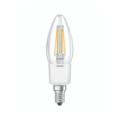 La lampada Osram Classic LED E14 Candela Filamento Chiara 6W 806lm - 827 Bianco Molto Caldo | Sostitutiva 60W è il sostituto perfetto per le tue vecchie lampade 60W con attacco a vite piccolo E14 grazie alla sua tecnologia LED. Passare a LED ti offrirà molti vantaggi!