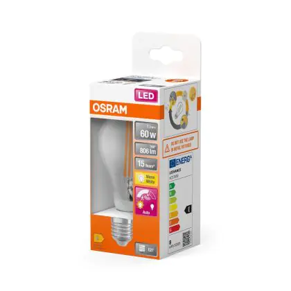 La Osram Classic LED E27 Pera Filamento Chiara 7.3W 806lm - 827 Bianco Molto Caldo | Sensore Di Movimento E Luce - Sostitutiva 60W è la perfetta sostituzione per la tua lampada convenzionale 60W con attacco E27 grazie alla sua tecnologia LED. Passare a LED ti offrirà tanti vantaggi!