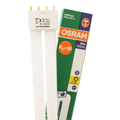 Le Osram Dulux L 36W/930 Lumilux DE LUXE Warm White sono lampade a basso consumo caratterizzate da una lunga vita utile e da un'alta efficienza luminosa. L'attacco di queste lampade fluorescenti compatte é del tipo ed é dotato di 4 pin (perni). La potenza di tali lampade é di 36W.