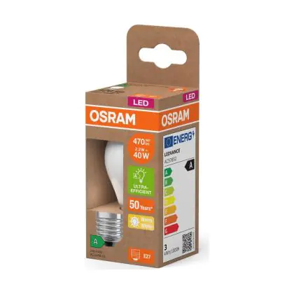 Grazie al suo consumo di soli 2.2W e la sua lunga durata di 50000 ore, puoi risparmiare fino al 60% di energia e con costi di manutenzione abbattuti. Le tradizionali lampadine a incandescenza durano solamente 1000 ore. Installare la lampadina LED è veramente facile, basta svitare la vecchia lampadina E27 ( una volta fredda ) e avvitare successivamente la nuova lampada di Osram con forma Pera nel portalampade. Questo prodotto di Osram è di qualità professionale.